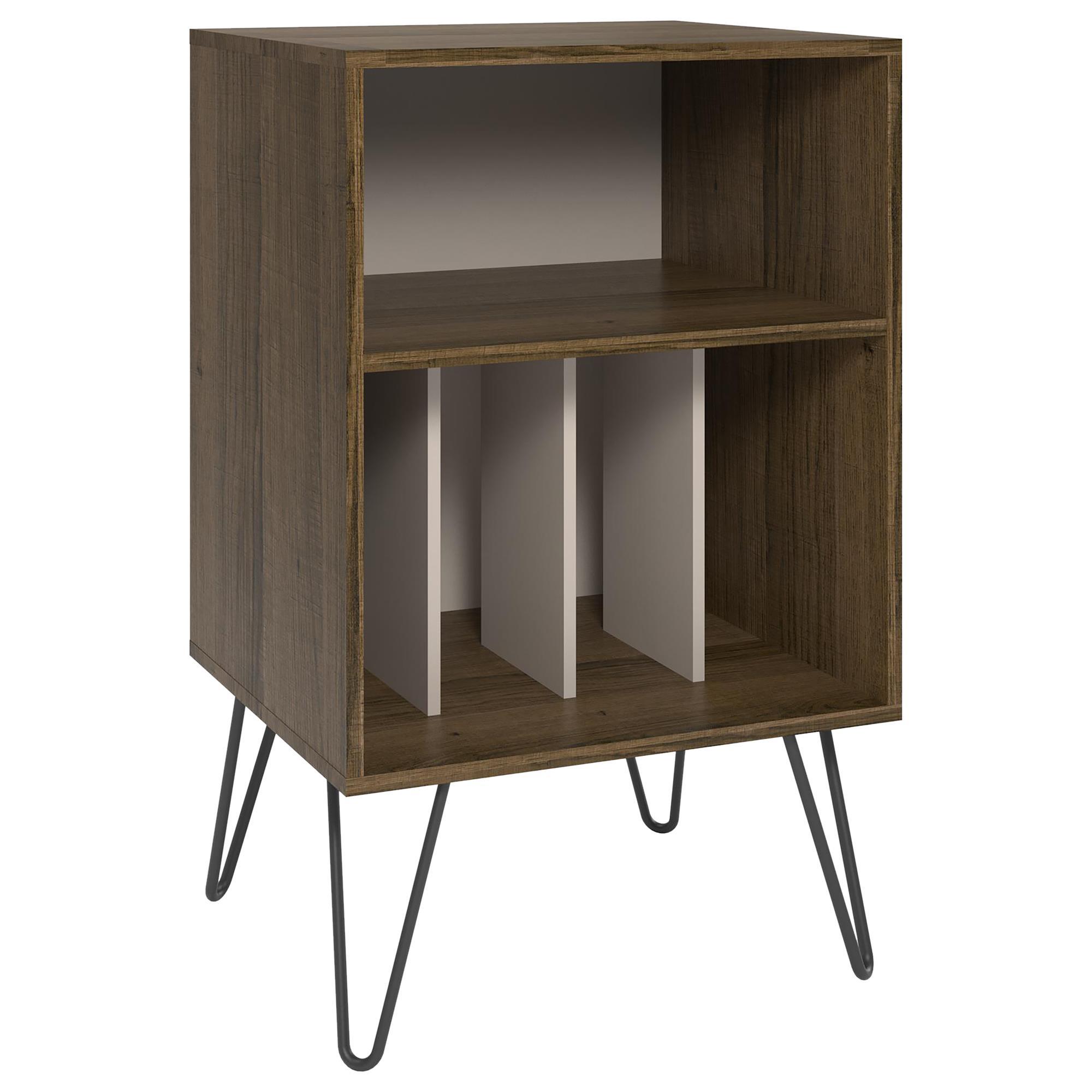 Each drawer can hold up to 15 lbs. The novogratz concord turntable stand ships flat to your door and 2 adults are recommended to assemble. The stand can hold up to 30 lbs. Upon assembly, the stand measures to be 31.8h x 39.7w x 18d. The stand is the perfect size to place your record player and keep your albums organized in the 4 lower cubbies or keep your favorites at the top in the large upper cubby. Each smaller cubby will hold up to 5 lbs. Go back in time with the novogratz concord turntable stand.you will love the hairpin legs and simple open design of this engineered wood record player stand. The double wide stand offers plenty. Once assembled, the stand measures to be 34.1h x 20.7w x 18d. And the large cubby will hold 25 lbs. It gives extra rigidity since the body is made from the brown wood which is as strong as it could get. Give your living room or entertainment space a retro look with the novogratz brittany turntable stand. Novogratz turntable stand single give your living room or entertainment space a retro look with the novogratz concord turntable stand.